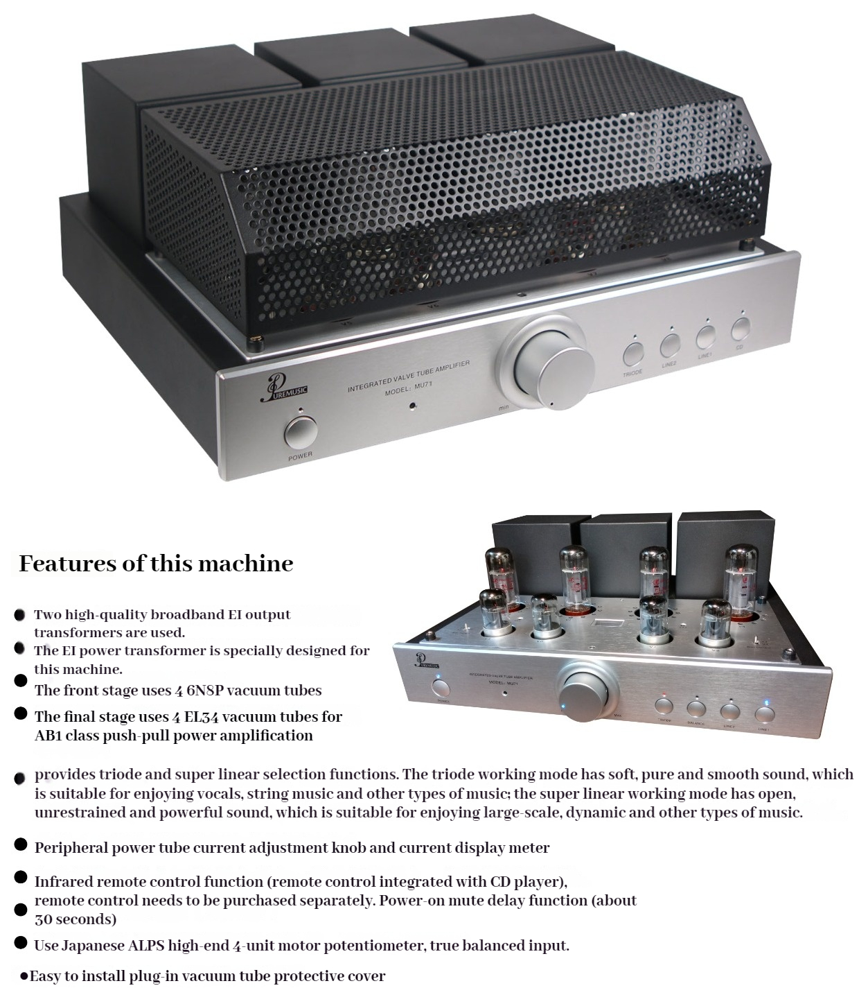 Vacuum tubes used: 6N8P×4 EL34×4