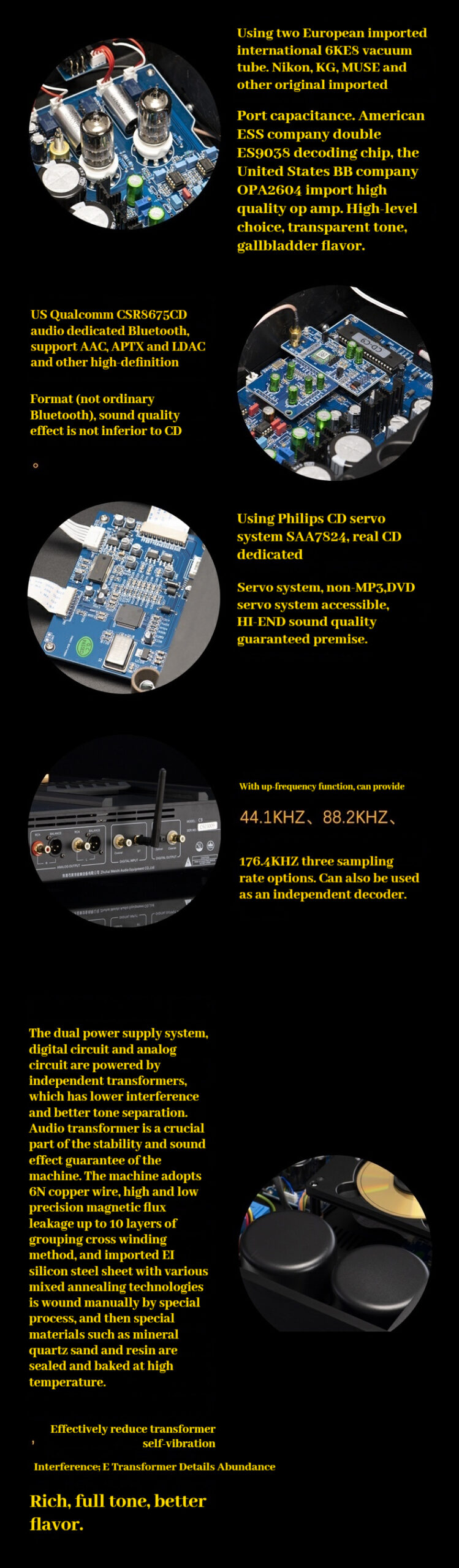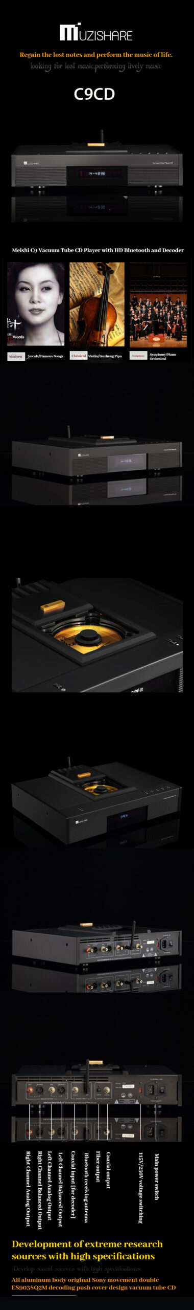 MUZISHARE C9 Audiophile Vacuum Tube CD Player with CSR8675CD HD Bluetooth 5.0 Supports AAC APTX and LDAC and Decoder 9038