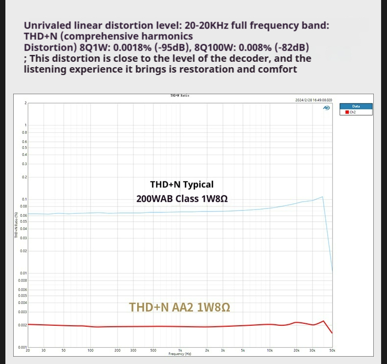 Harmonic distortion(1W 20-20KHZ):0.003%