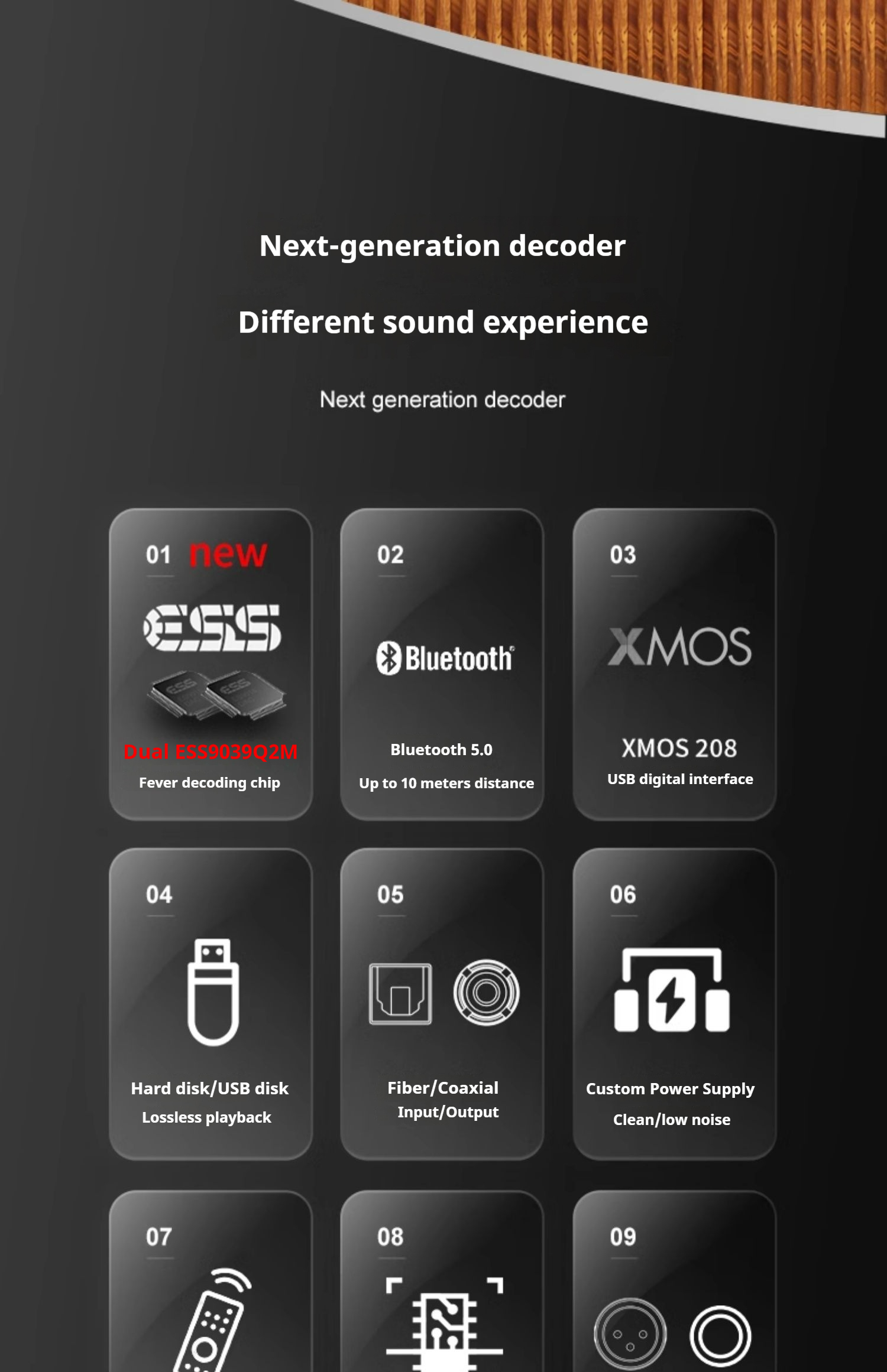 D/A conversion:ESS9039Q2M*2(32bit/384KHz)