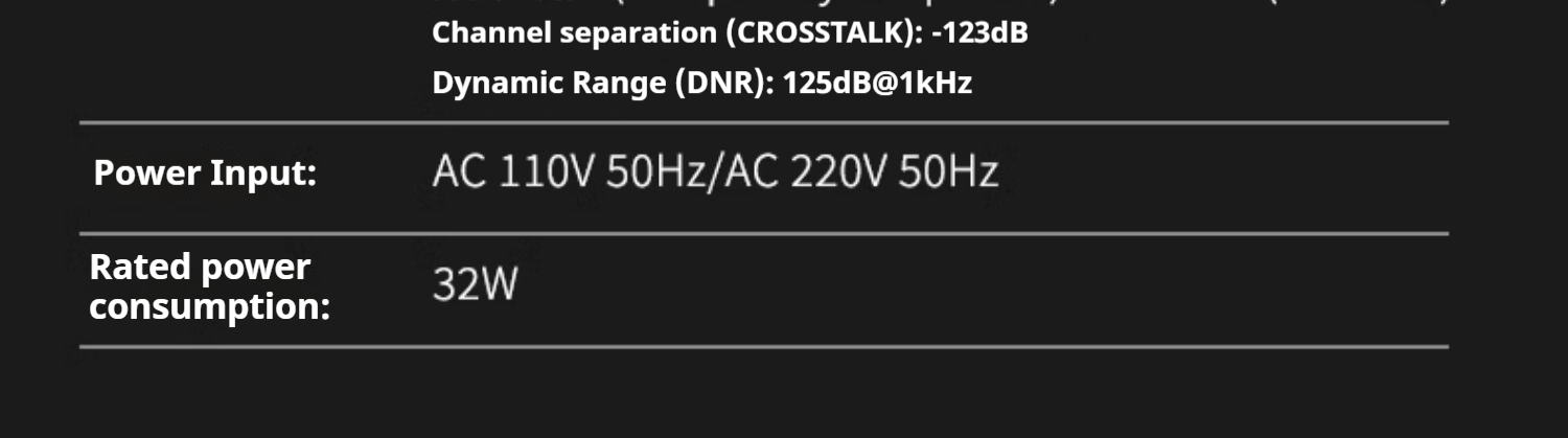 Total harmonic distortion (THD+N):-120dB@1kHz (weighted)Noise: <4uVrmsSignal-to-Noise Ratio(SNR): 120dB@1kHzFrequency Response:20-50kHz(±0.1dB)Channel separation(CROSSTALK):-123dB
