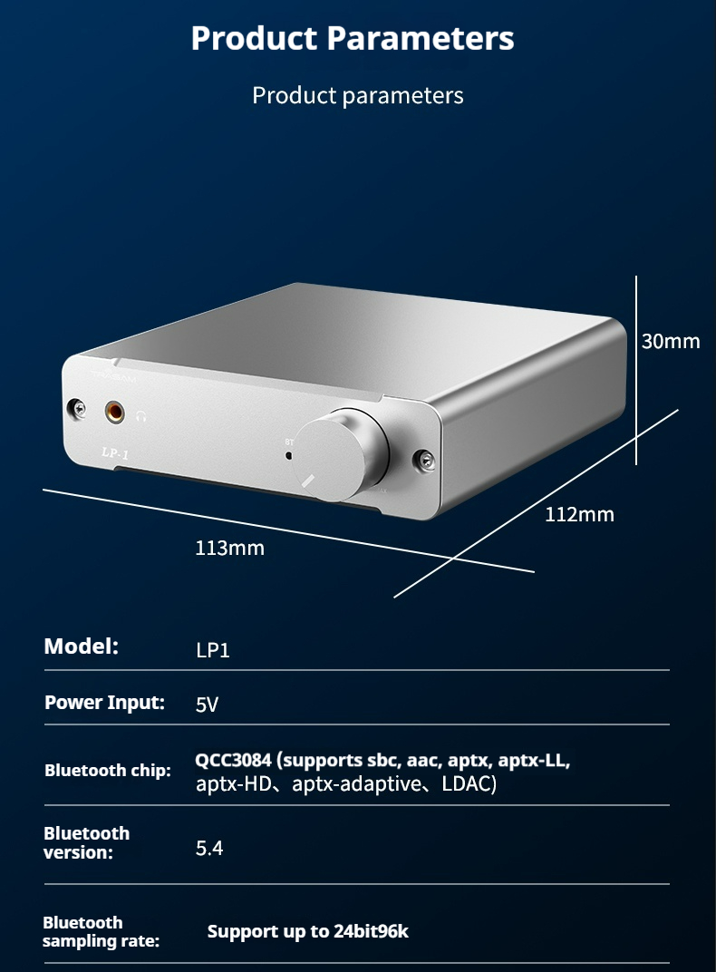 Bluetooth chip:QCC3084 (supports sbc, aac, aptx, aptx-LL,aptx-HD,aptx-adaptive,LDAC)