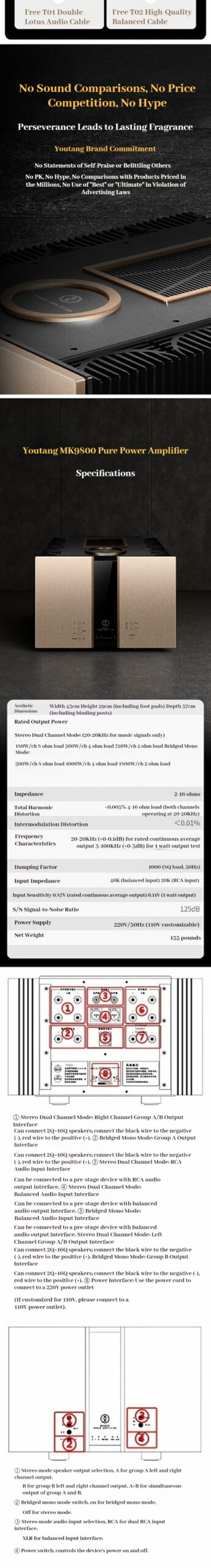 SUQIYA MK9800 Power Amplifier Pure Class A Fully Balanced 360w*2 High Power HiFi Fever Grade Bridge Mono