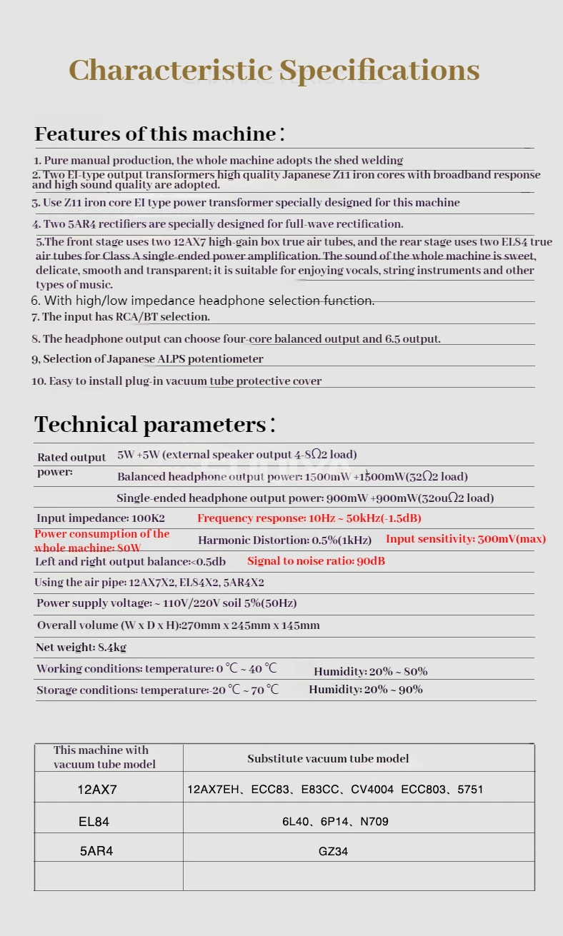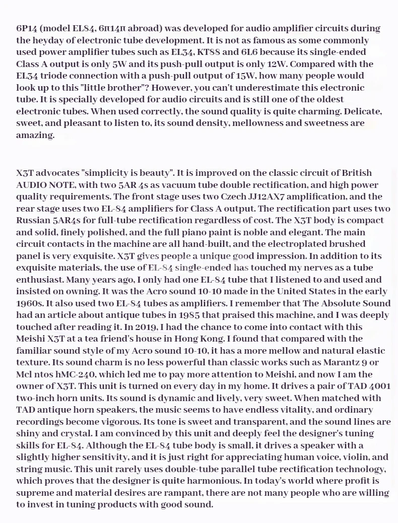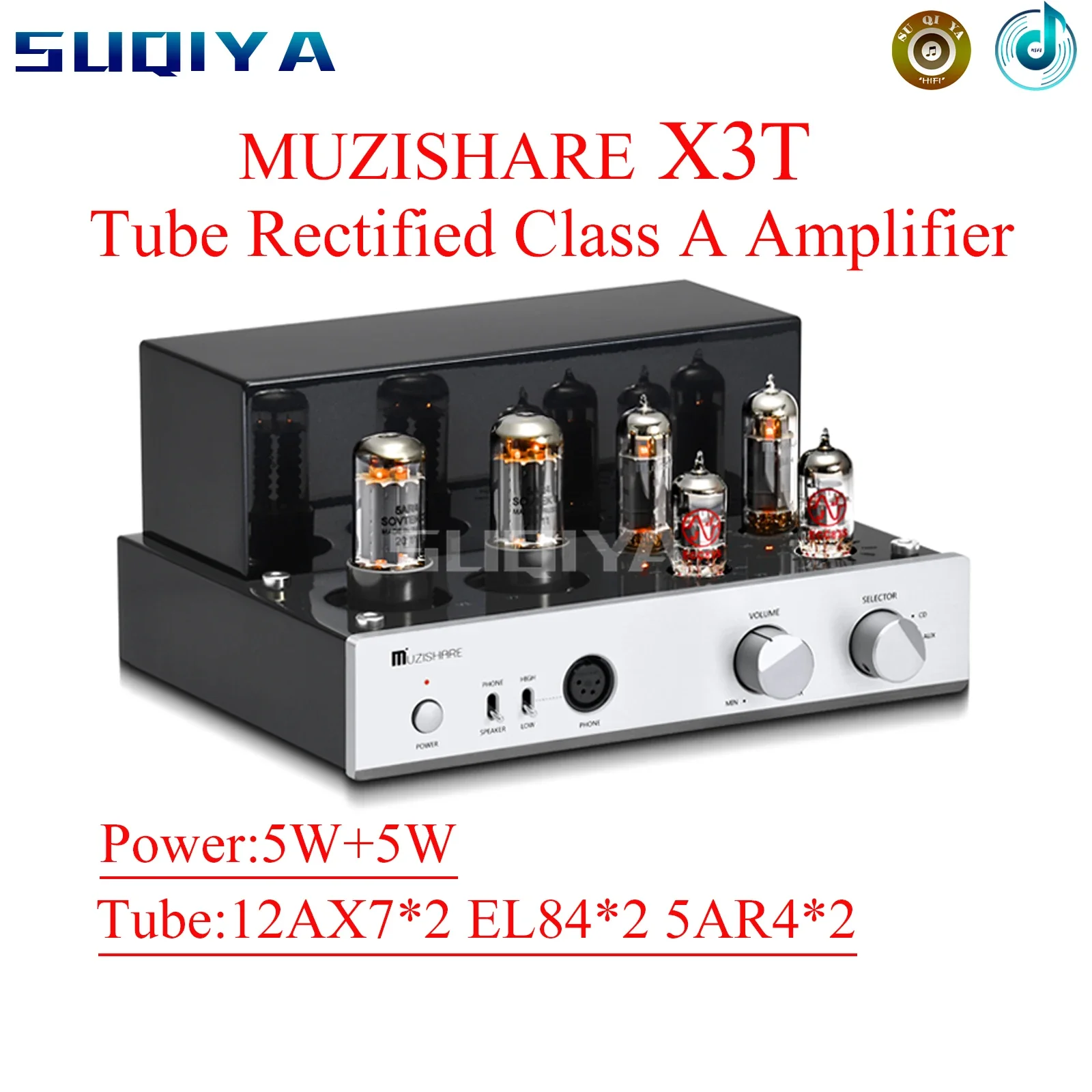 SUQIYA-MUZISHARE X3T 5AR4*2 Dual Rectifier Circuit Integrated Vacuum Tube Amplifier EL84*2 Pure Class A Single-ended Power Amp