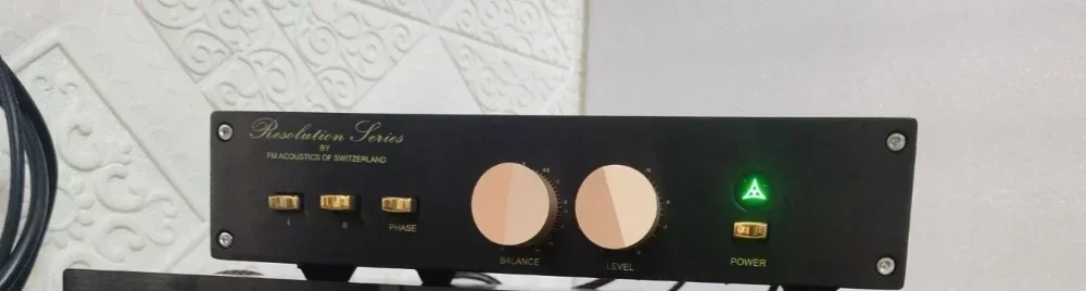 • Front panel functions are source input selection, output phase switching, left and right balanced volume control total volume control, power switch.