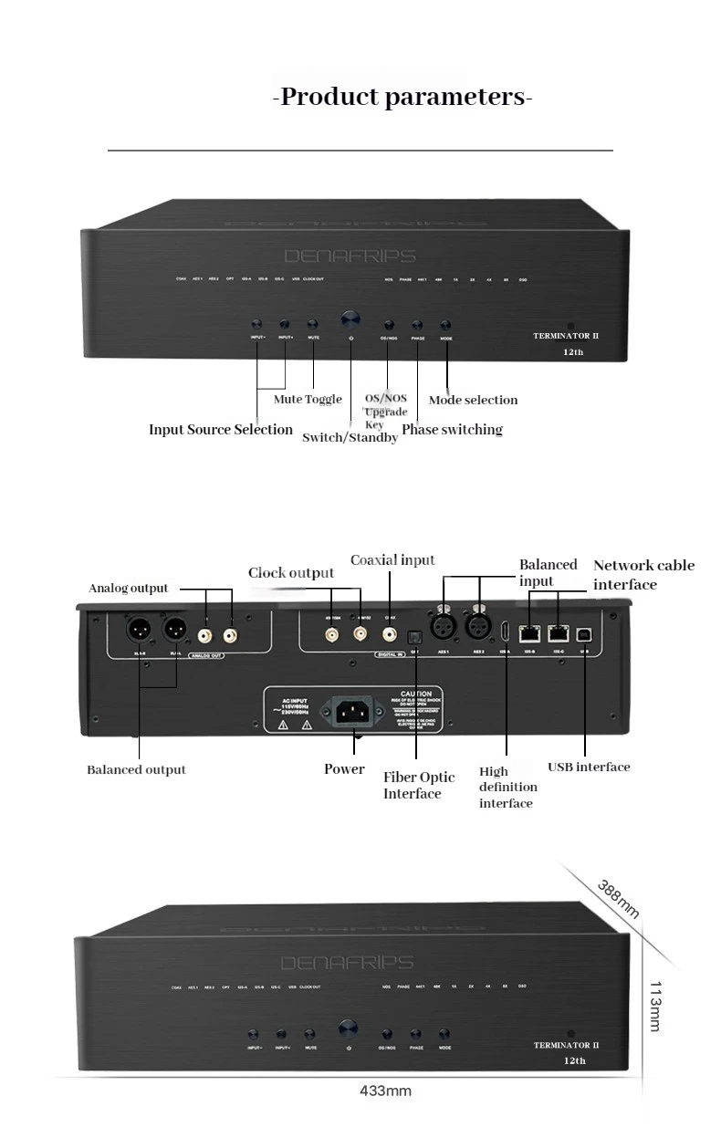Package contents: D/A converter only. No power cord and remote control.