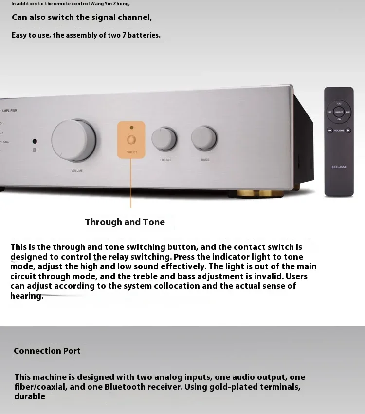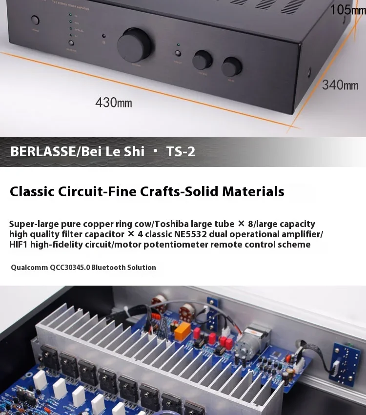 SUQIYA TS-2 200w*2 2-channel Stereo Amplifier High Power Fiber Coaxial Bluetooth 5.0 with Remote Control Class AB Home Audio